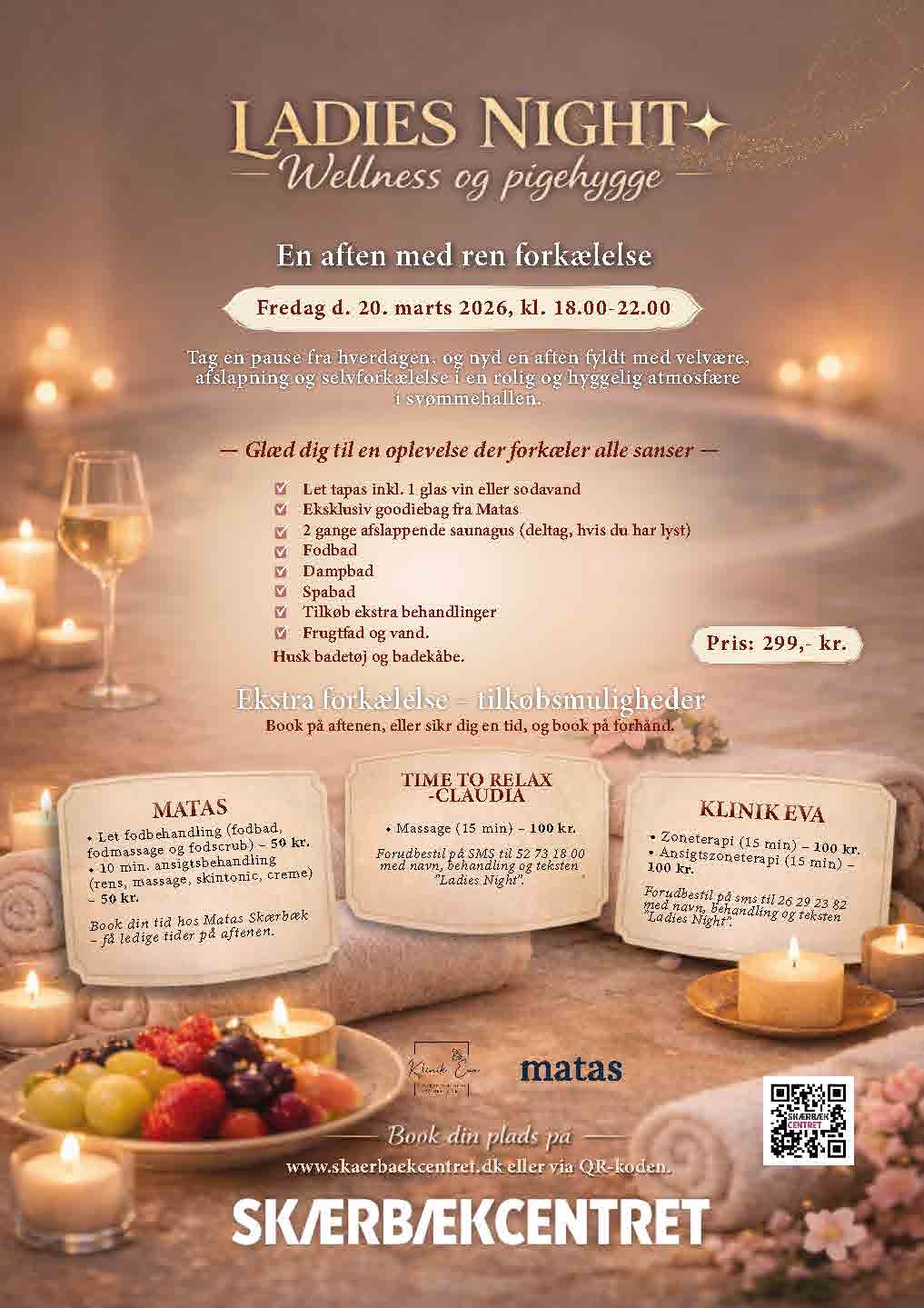 Forudbestil på sms til 26 29 23 82 med navn, behandling og teksten ”Ladies Night”.